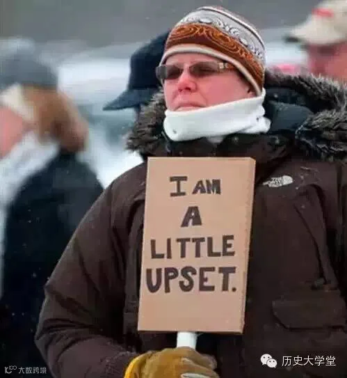 ▼2.除了警察,加拿大的抗议群众也是nice的可爱,您看这位大妈,举个牌子说:“我有点生气……”,这个语气强度,也是醉了。