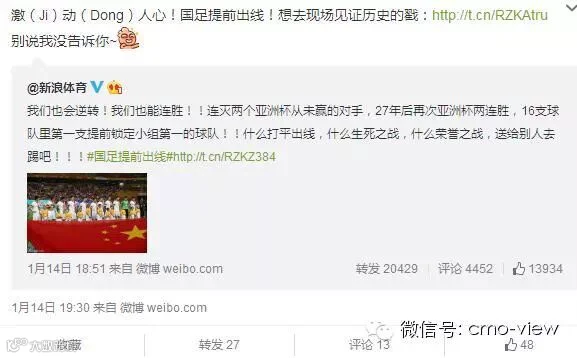 2015年1月14日,两连胜! 国足提前锁定小组第一! 一晚上球迷们沸腾了,于此同时狂欢的不仅仅是球迷,还有那些善于借势营销的企业们。