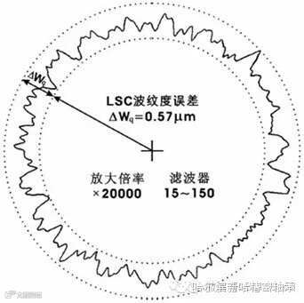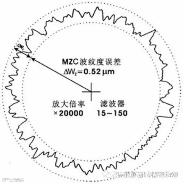 在圆度测量显示轮廓的波谱中,高于圆度波数的一个范围内的波数集合的峰谷幅值即为波纹度。轴承的波纹度一般说的是轴承滚道和滚动体表面的微观状况,用圆度仪测量。波纹度测量时的频率响应范围为15upr -150upr及15upr-50upr,滤波器通带衰减3dB。国家标准规定使用15upr -150upr的频率响应范围测量钢球(滚子)和内沟(滚道)的波纹度;使用15upr-250upr的频率响应范围测量外沟(滚道)的波纹度。