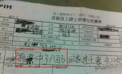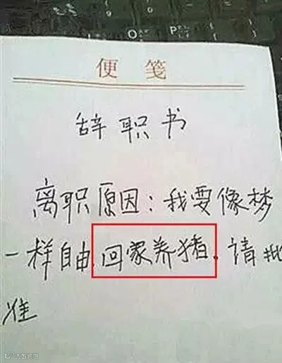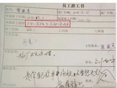 最后还有这位童鞋,你辞职两字都不会写,还是就好好上班吧。