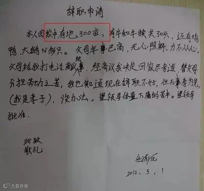 地主式理由:家中有地300亩。。。。我得回去打理了。。。