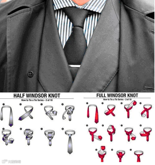 1、不要尝试温莎结之外的领带系法,根据自己的脸型来决定用半温莎结还是全温莎结(温莎结怎么扣,下面有小图,自己保存吧)。如果你不知道自己的脸是大还是小,问问男性朋友们,他们的评价会更客观。