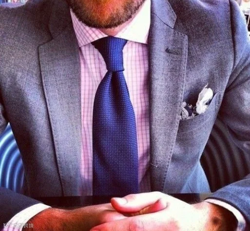 9、领带下端不能垂到腰带以下。否则,坐下时领带末端直指生殖器的尴尬你懂得。