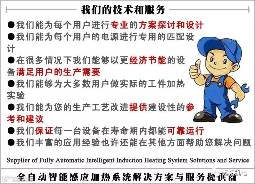 “远拓机电”是国内较早涉足感应加热成套生产线研究、设计、生产、销售及服务的高新技术型企业。产品主要应用于:钢棒调质、钢坯加热、钢管热处理、锻造透热及挤压加热、管线材热处理、热装、感应淬火、回火、退火等加工领域。
