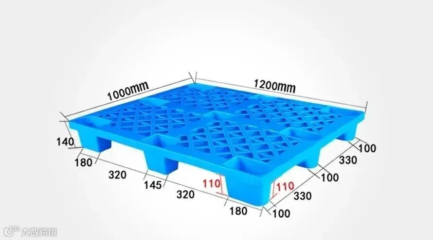 核心参数:尺寸1000×800×130mm,自重6-10kg;静载2-4吨,动载0.5-0.8吨;用料为HDPE或PP,部分采用网格面设计,通风防潮,便于货物清点。