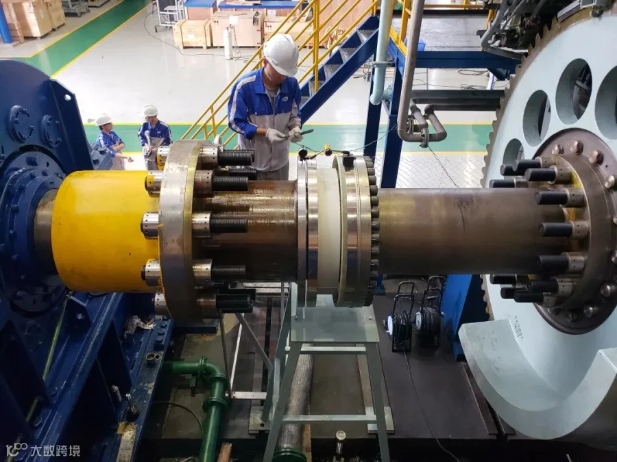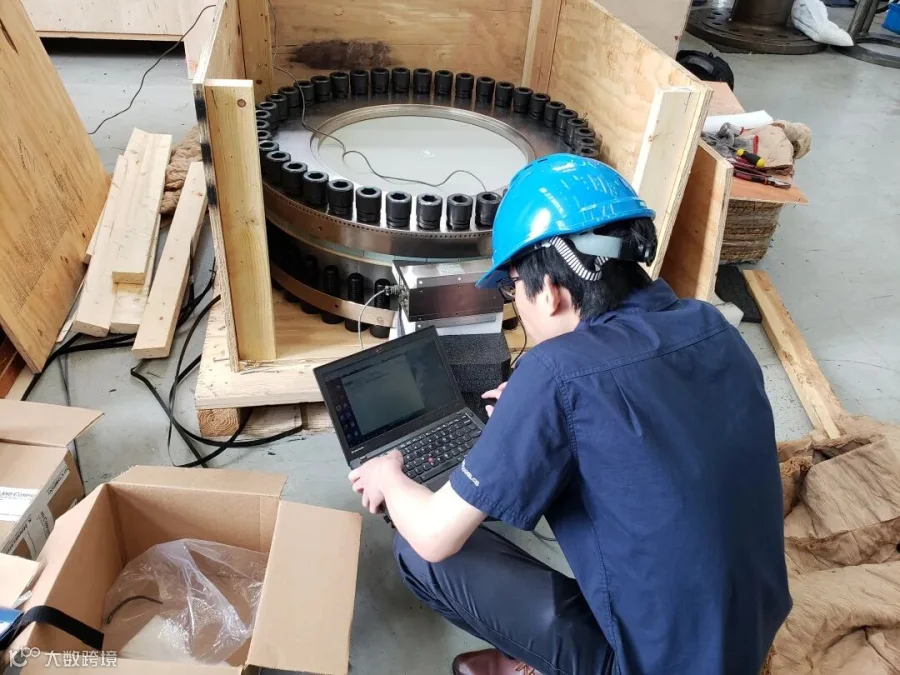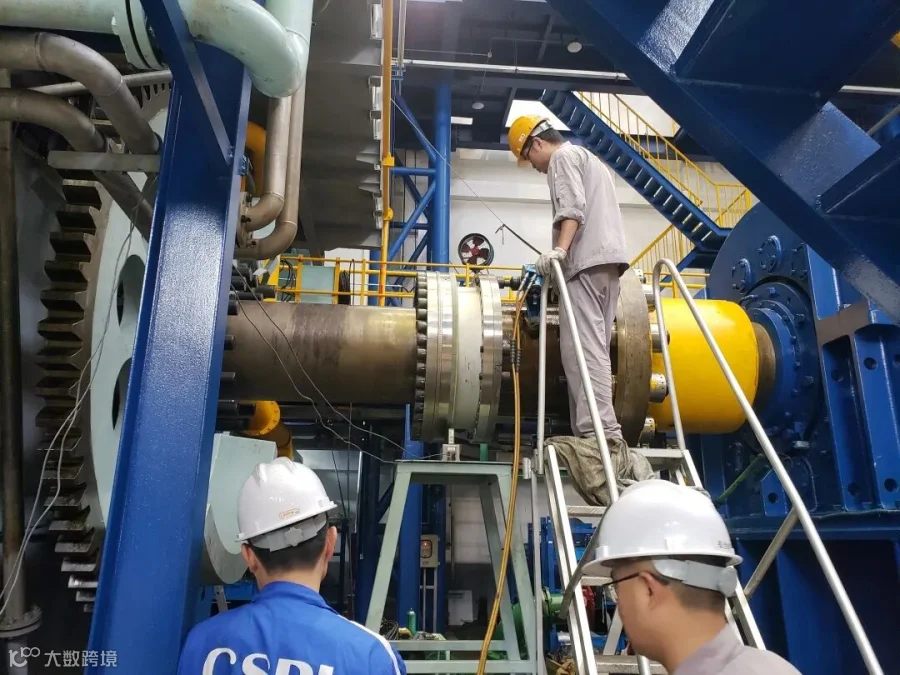 MCRT®86011V扭矩传感器被安装于低速双燃料机与水力测功机之间,为了高动态采集扭振曲线,扭矩传感器与传动轴之间采用了刚性机械连接。在我方技术人员现场指导下,传感器顺利安装调校完毕。