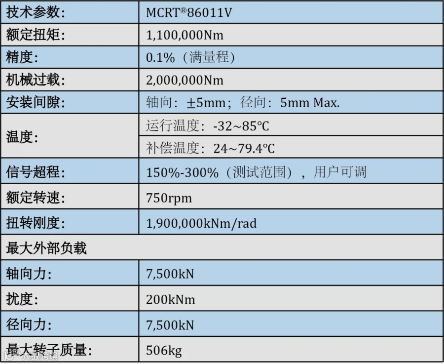 为了解决超大扭矩和高动态响应的测试要求,美国希蒙斯坦公司凭借其强大的工程设计与制造能力,为此项目推出了MCRT®86011V和MCRT®87011V无轴承动态扭矩传感器。