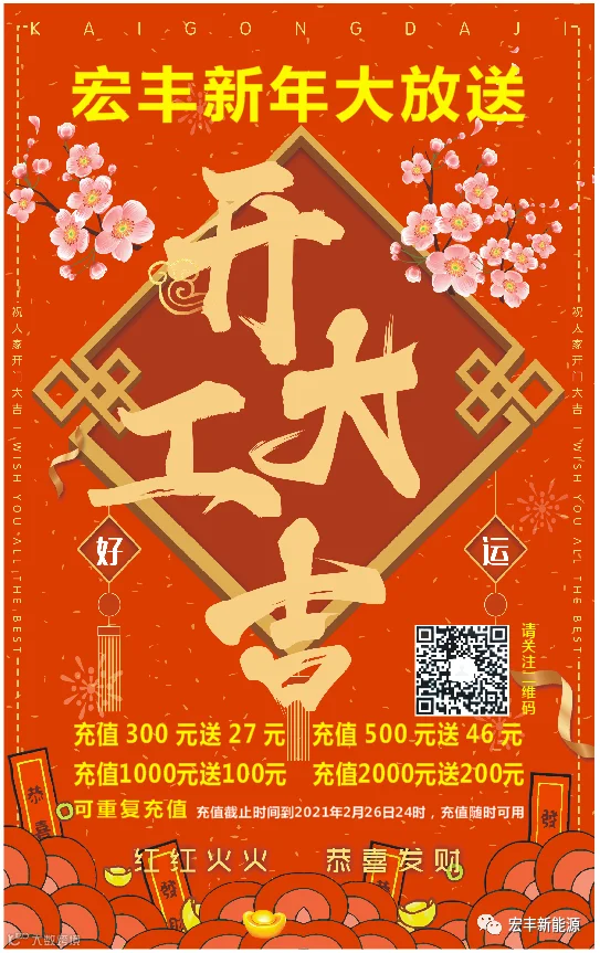 宏丰新年大放送“充值赠送活动”祝大家开工大吉,万事胜意!!!