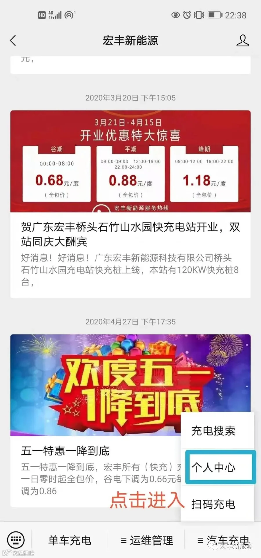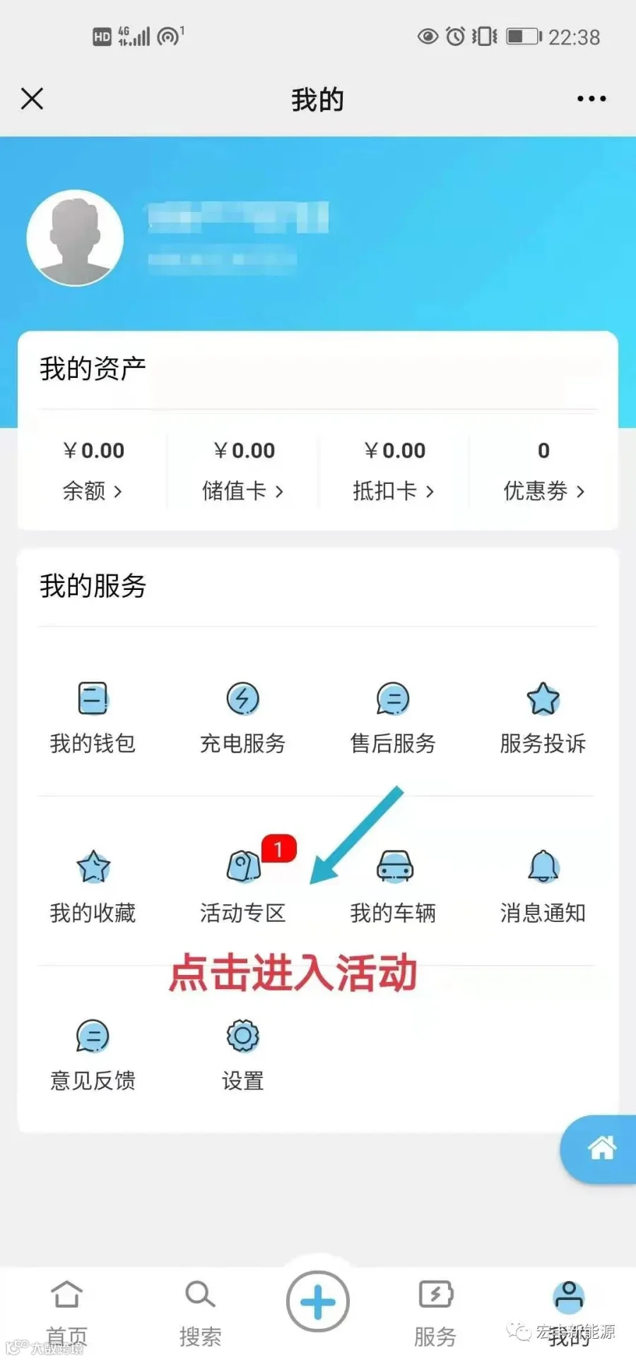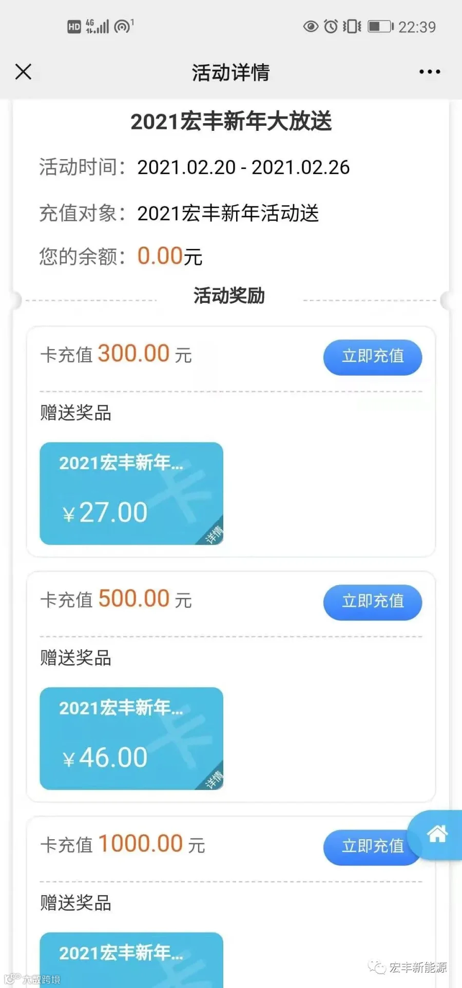 (宏丰新能源公众号—汽车充电—个人中心—活动专区—进入活动—选择对应充值活动—立即充值)