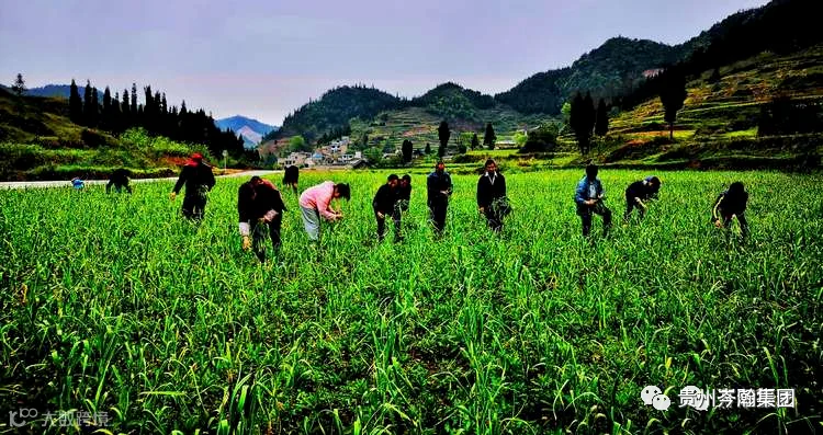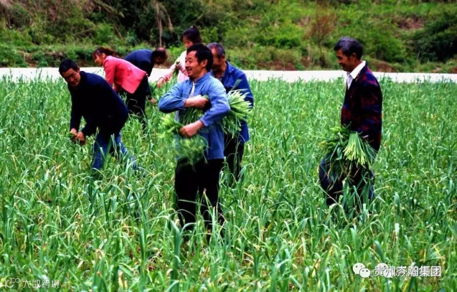 谷丰村虽然叫“谷丰”,但却是以烤烟、玉米、姜蒜为传统农作物。其中,谷丰姜蒜更是远近闻名的农产品。眼前这片近300亩的大蒜种植基地,是谷丰村与贵州岑瀚集团公司合作,流转村民土地种植大蒜。同时,公司提供务工岗位,以流转土地费及务工劳务经费帮助村民实现增收。