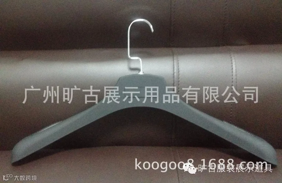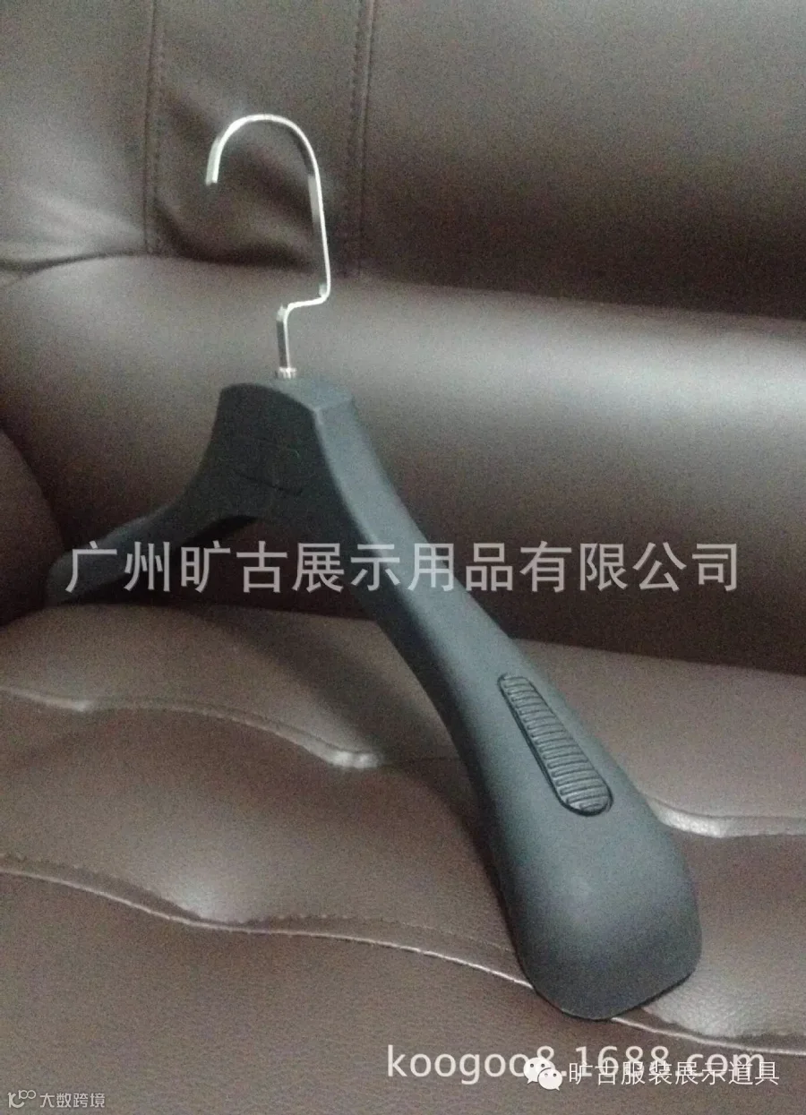 此款为高档扁钩手感漆塑料衣架,衣架带防滑条加宽设计,时尚防滑耐用,适用于夹克、西服和大衣等外套,起撑效果好!实为服装店、酒店服装衣架的上佳选择!
