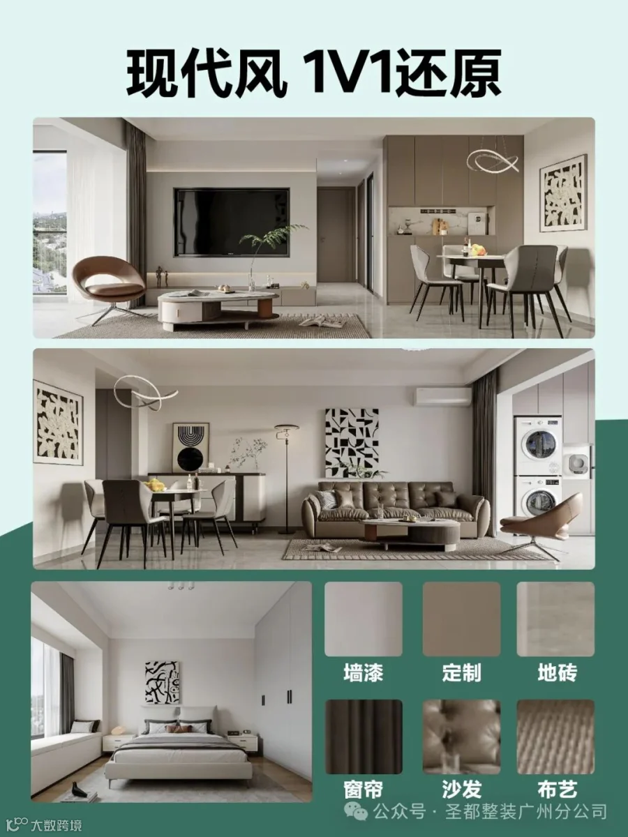 针对“效果图难落地”的这一痛点,广州圣都整装在今日推出全新K5系列产品,结合当下三大人气装修风格:现代简约、奶油风、中古风,整合了对应风格下的定制柜体、家具家电、灯具窗帘等软装产品,形成系列给到客户选择,确保后期落地能够真实还原效果图。