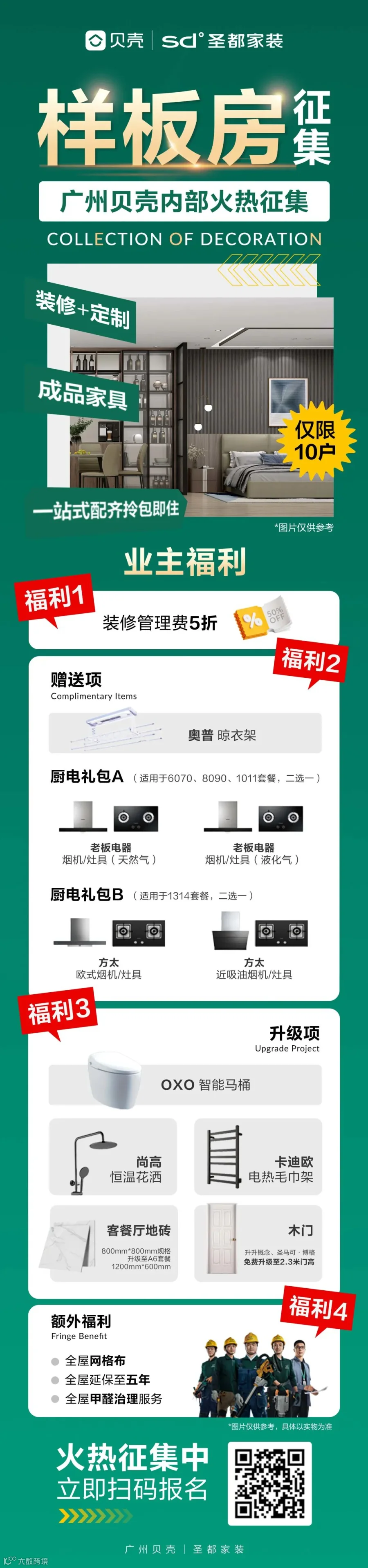 装修管理费5折、赠送厨电礼包、材料升级等四重福利