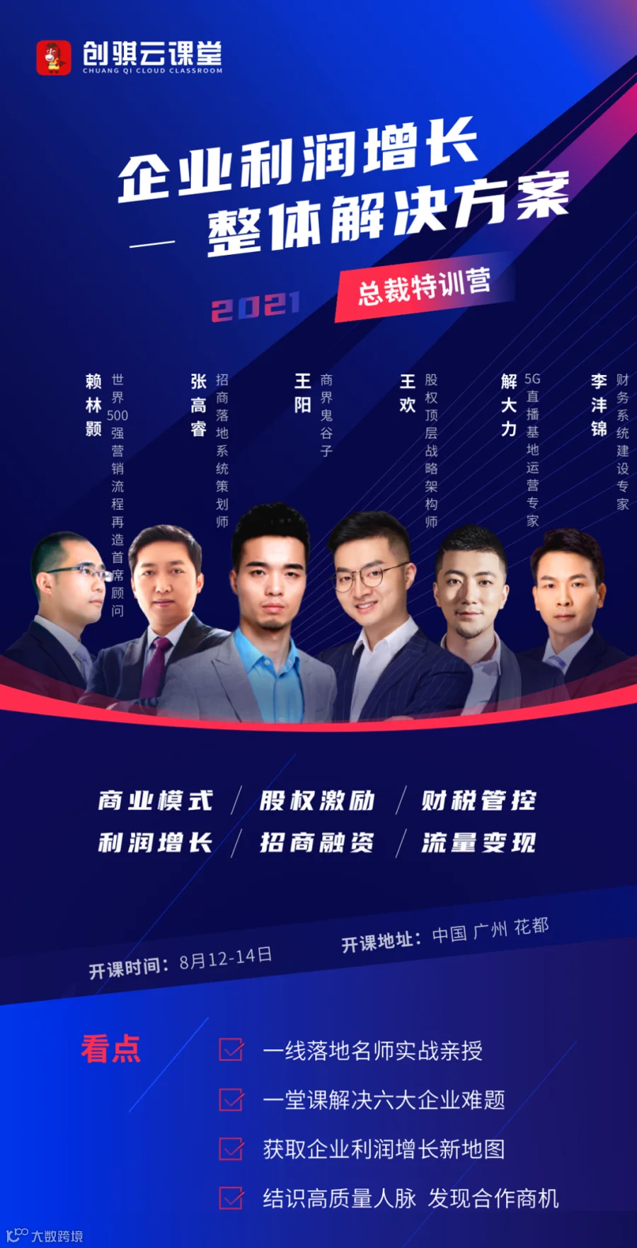 《总裁特训营》打造跨界交流的终身学习平台,通过一线落地名师实战特训,围绕模式、股权、财税、增长、招商、营销六大主题板块,帮助企业总裁全方位解决企业的痛点难题,获取企业利润增长新地图,多维成果转化。