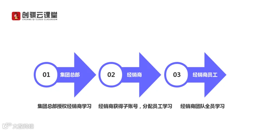 降本增效,提升中下游企业的竞争力:集团总部通过创骐云课堂给经销商团队进行企业商学院定制,帮助经销商团队搭建适合他们成长的个性商学院,让他们通过定制商学院学习的各方面的营销干货、技能内容,获得系统、完善、垂直的商学院平台支持,通过系统的学习,打造更强大的经销团队,拓展销售能力,倍增渠道业绩。
