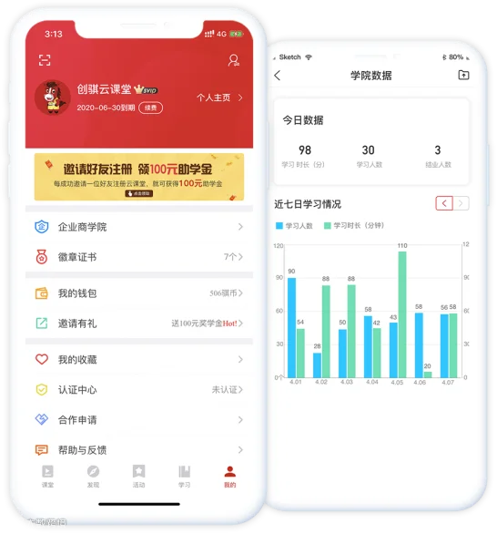 企业商学院定制:集团总部可通过定制企业化课程,形成最强的企业智库,员工随时通过创骐云课堂APP上学习集团定制的内容。这样一来,集团总部相当于节省了90%的团队培训时间,将宝贵时间投入到核心业务的开发上!