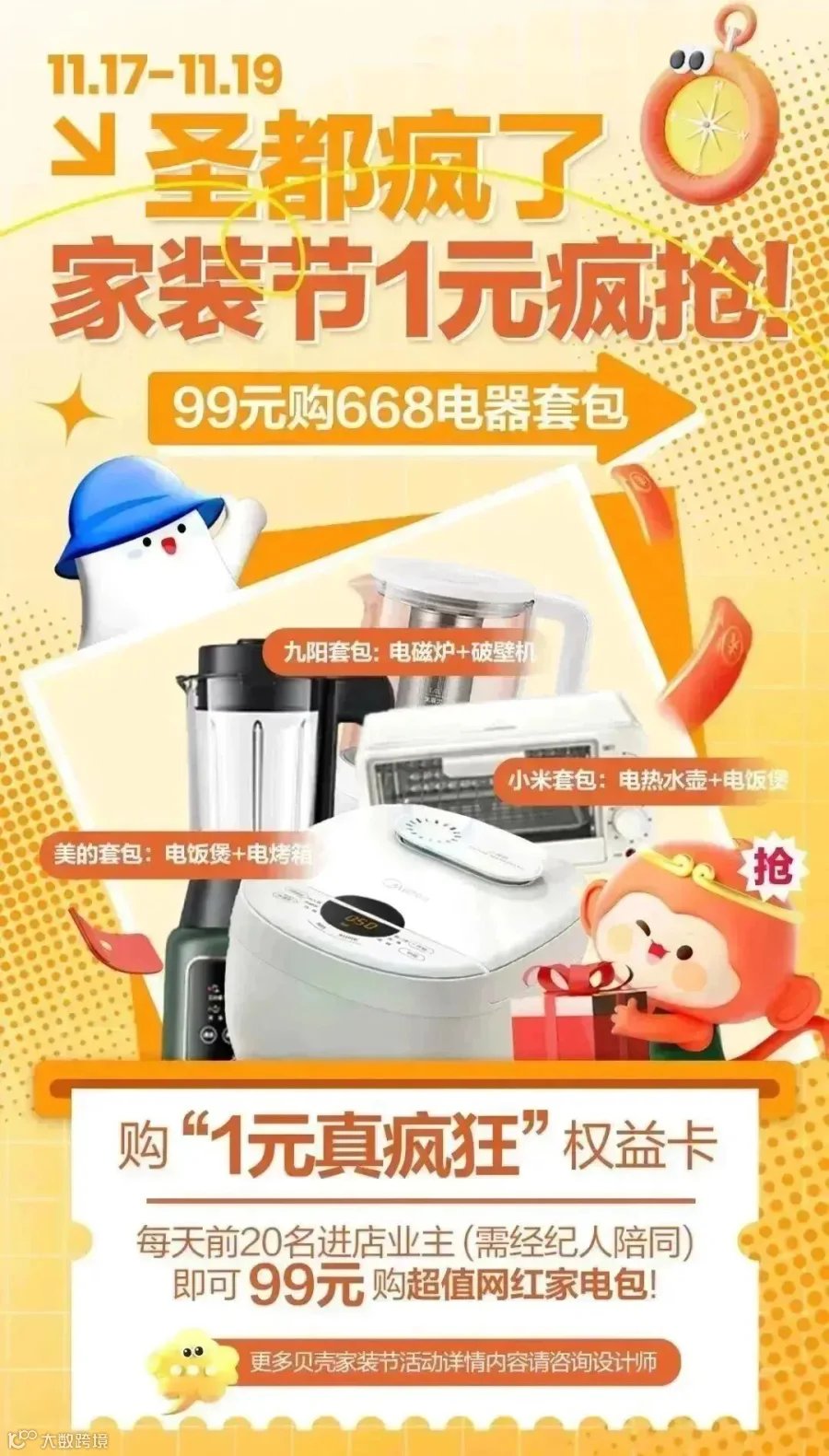 经纪人陪同贝壳业主进店即可99元抢购家电套餐!