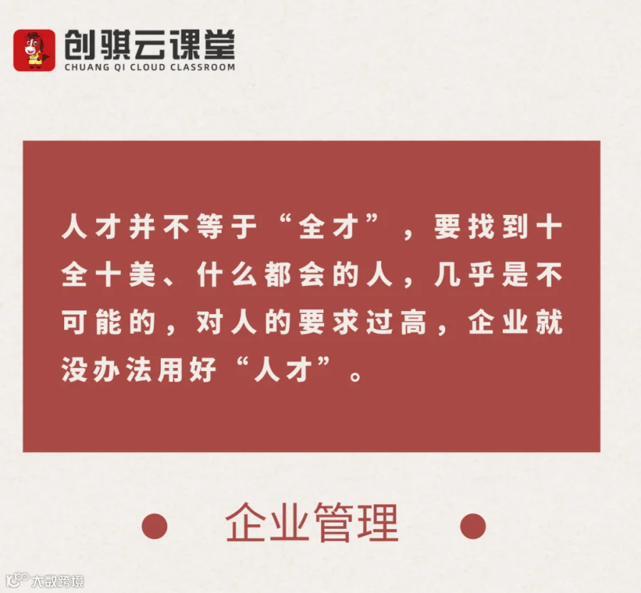 但是人才并不等于“全才”,要找到十全十美、什么都会的人,几乎是不可能的,对人的要求过高,企业就没办法用好“人才”。