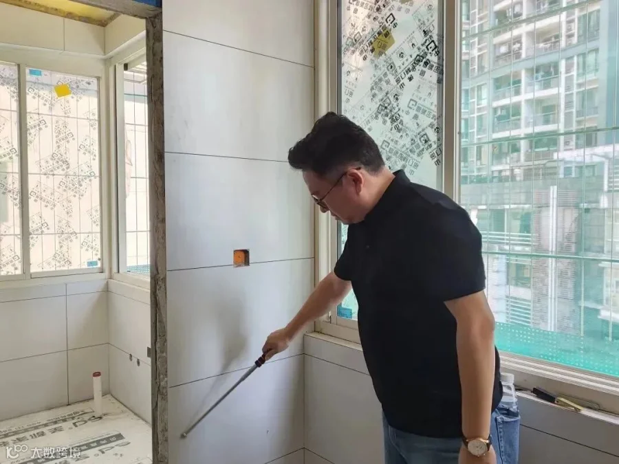 在工地巡检过程中,发现厨房部分瓷砖空鼓,蒿总亲自对问题瓷砖进行砸拆,真将“20项砸无赦”落实到位。
