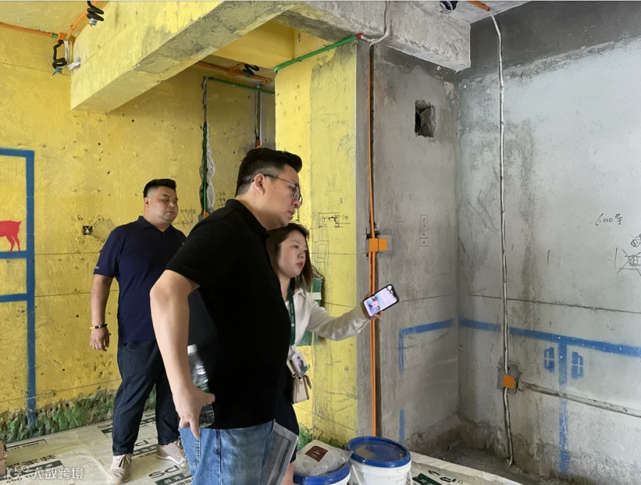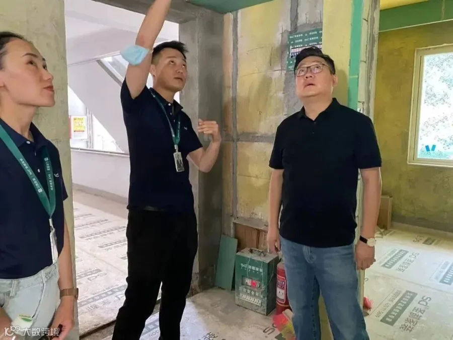 除了了解基本的动线,蒿总也特地就原户型对设计格局进行了仔细分析,而辛总也在现场和工程、项目经理一起聊家装工装的区别,巡检团队通过不断地相互交流和学习,保证施工质量巡查的细致性,为客户排忧解难。