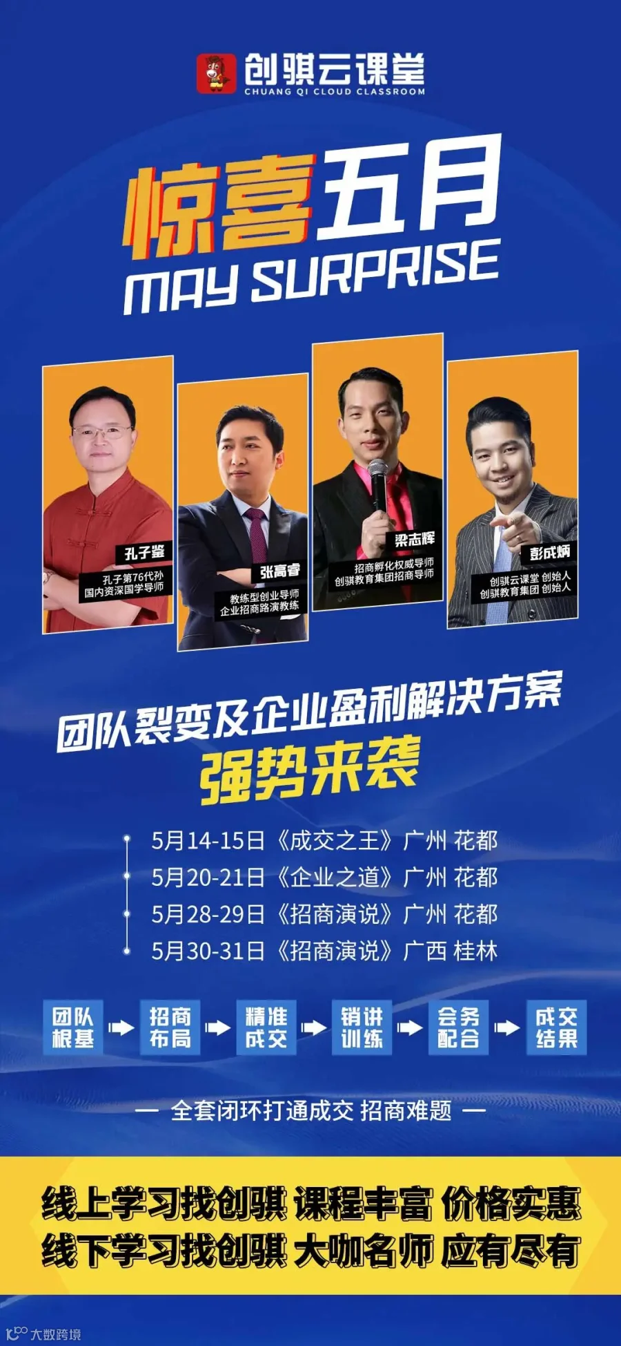 5-8月是企业生意的旺季,要想做大做强,这时候更需要进阶学习《招商演说》和《成交之王》,修炼和武装团队,助力企业生意和经营节节高升,蒸蒸日上!