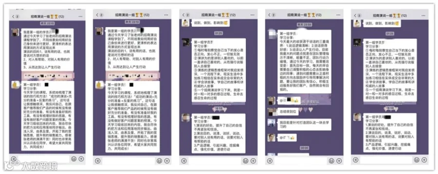 《招商演说》课程现场以互动+教练的教学方式,让学员充分锻炼演说能力,循序渐进,掌握一招致胜的演说技巧,从不敢上台,到主动站上舞台分享,再到做出精彩的商务演讲,不断地突破和超越自己。