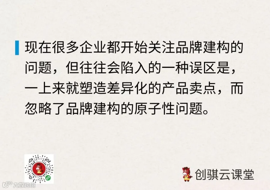 现在很多企业都开始关注品牌建构的问题,但往往会陷入的一种误区是,一上来就塑造差异化的产品卖点,而忽略了品牌建构的原子性问题。这个怎么理解?