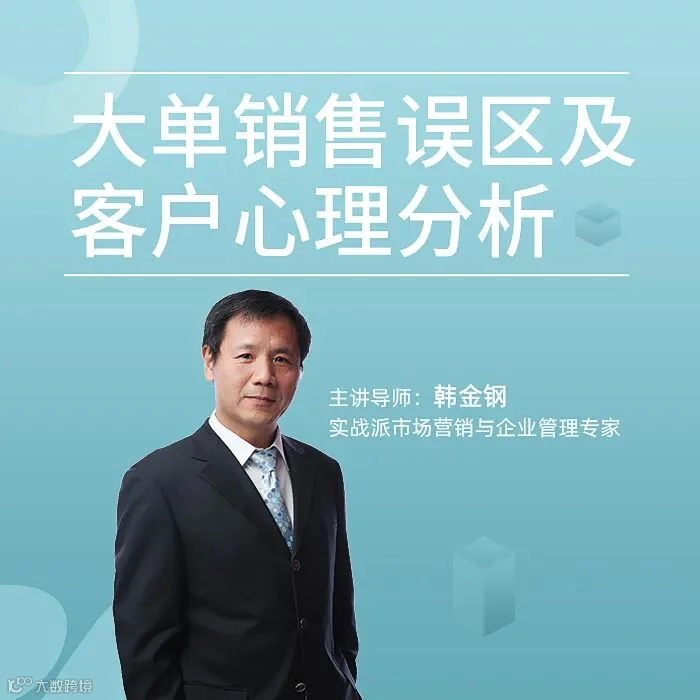 《大单销售误区及客户心理分析》这门课程,韩金钢老师把自己20多年实战经验以及14年培训总结,打磨成14节实战课程,教会你处理客户关系的心理分析,帮你从销售小白到销售高手的飞跃。