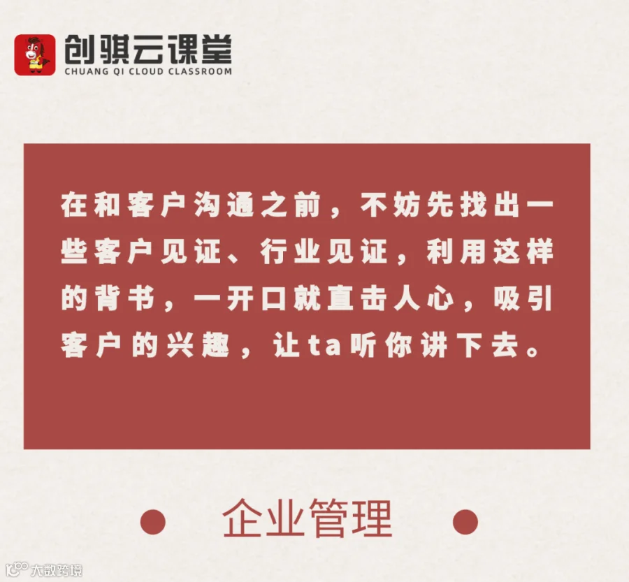 在和客户沟通之前,不妨先找出一些客户见证、行业见证,利用这样的背书,一开口就直击人心,吸引客户的兴趣,让ta听你讲下去。