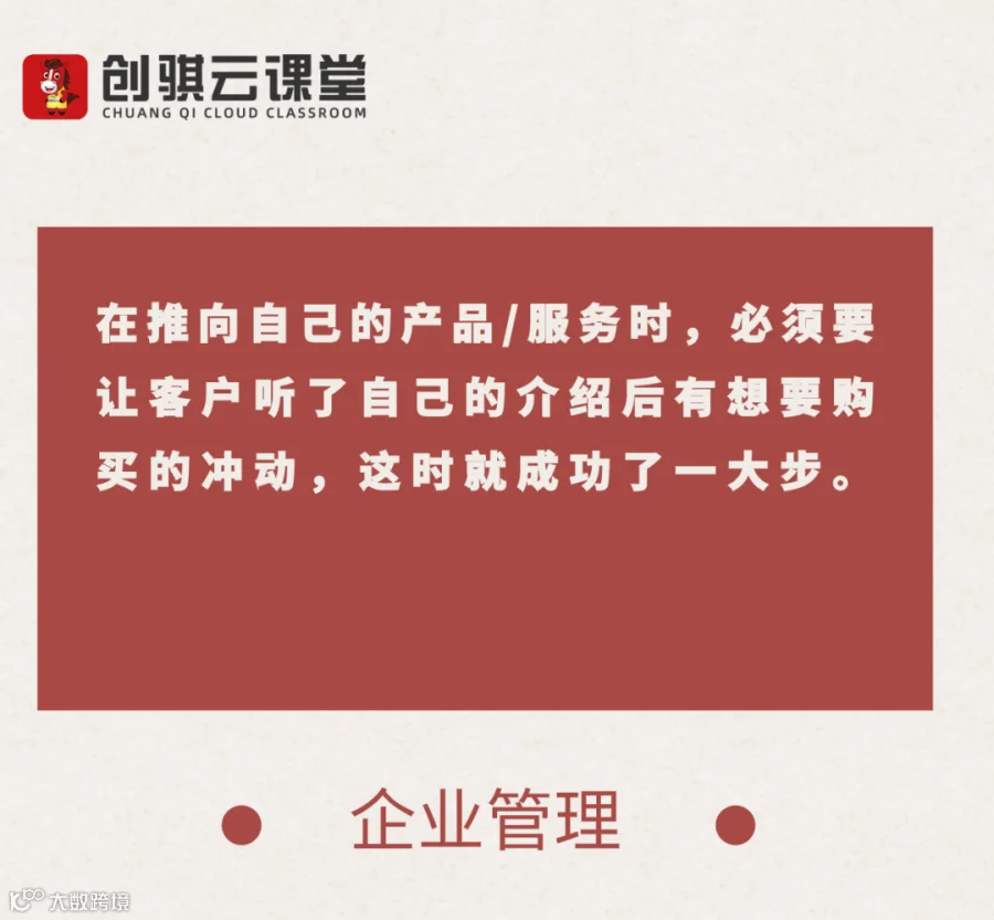 在推向自己的产品/服务时,必须要让客户听了自己的介绍后有想要购买的冲动,这时就成功了一大步。