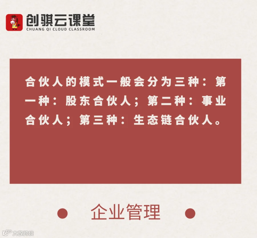 第一种:股东合伙人;第二种:事业合伙人;第三种:生态链合伙人。