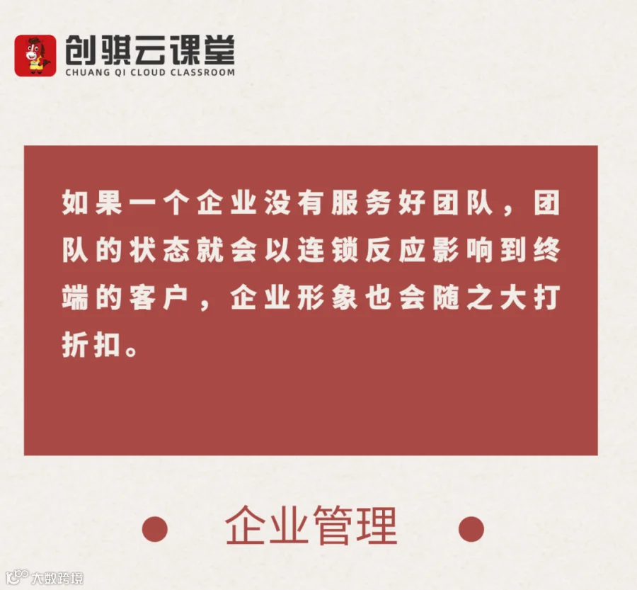 如果一个企业没有服务好团队,相应地,团队的状态就会以连锁反应影响到终端的客户,企业形象也会随之大打折扣,进而打击客户的自信心,这样就会损失掉一部分客户。