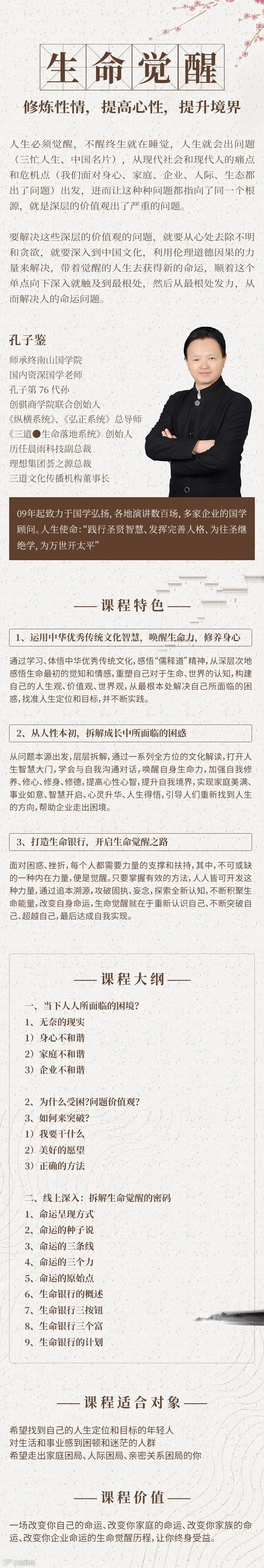 如果你希望找对合适方式和方法来打造美满家庭、成就一番事业、破解生命智慧和密码,那么孔子鉴老师的这门《生命觉醒》课程,你千万不要错过!