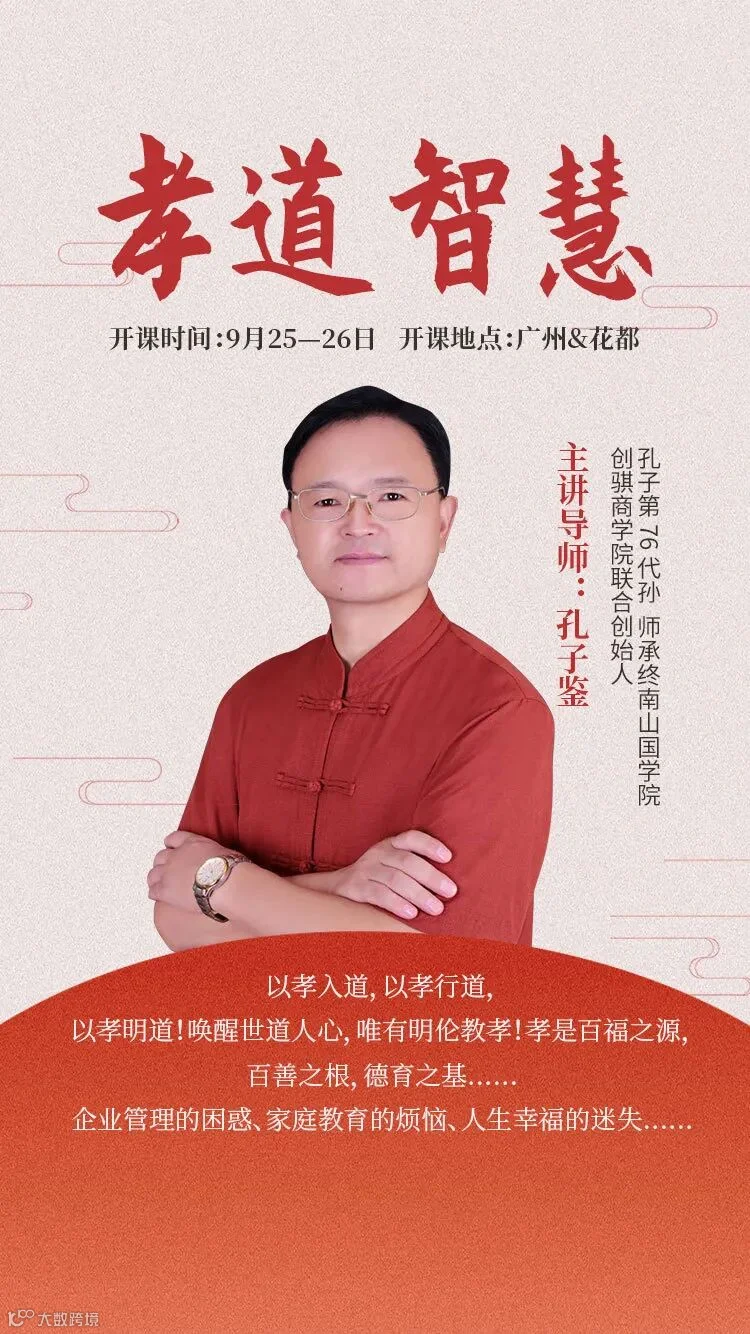 这也是孔子鉴老师创设《孝道智慧》课程的初心,孔子鉴老师师承终南山国学院,是国内资深国学老师,孔子第76代孙。