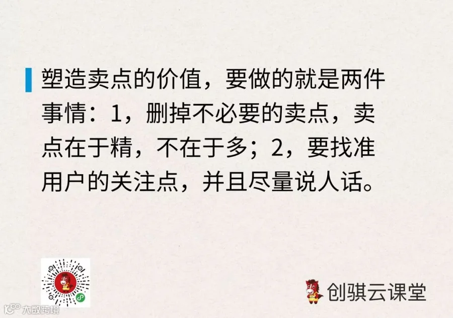 如果你还想继续学习关于产品卖点的提炼方法,你可以点击下方图片,到创骐云课堂学习。