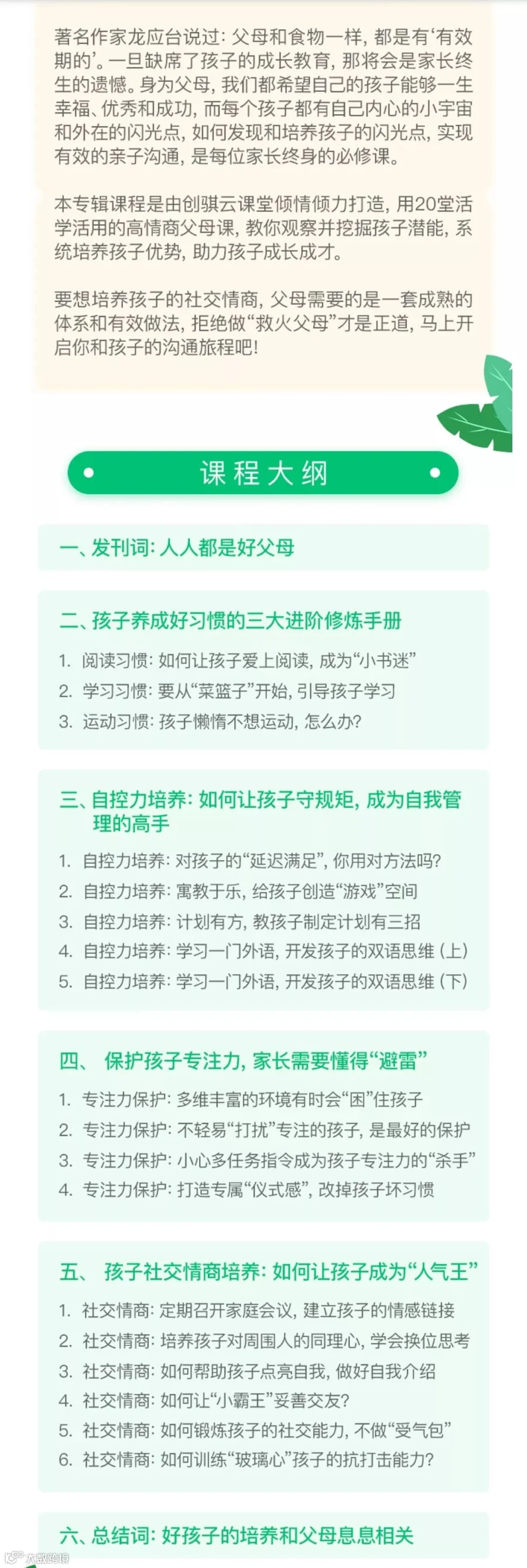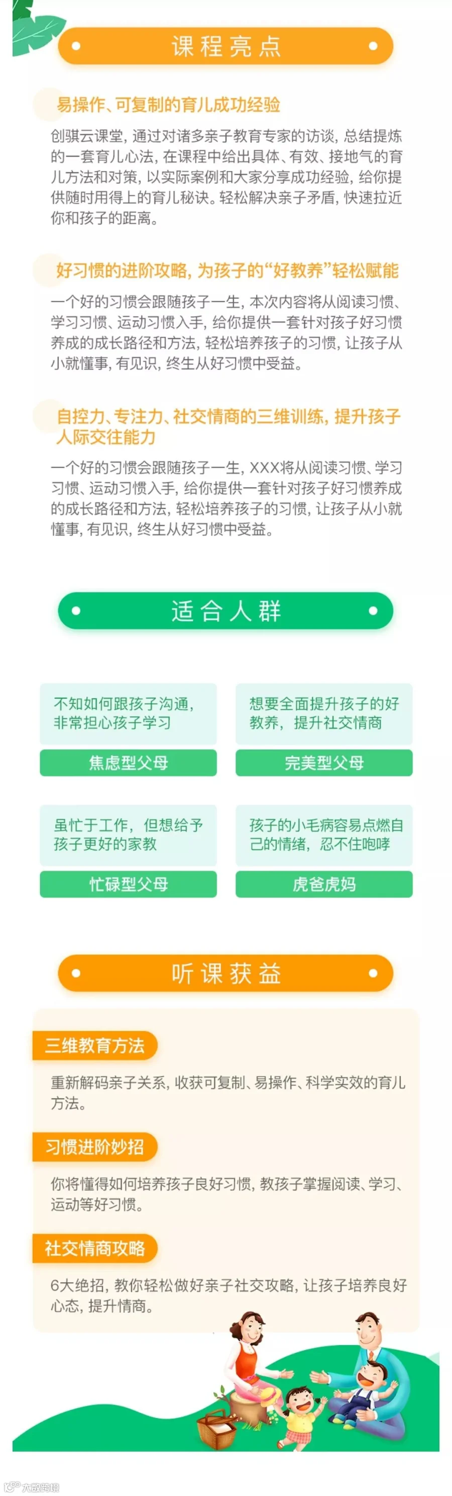 《如何教出一个有教养、受欢迎的“暖”宝宝?》这套课程,是由创骐云课堂通过对诸多亲子教育专家的访谈,精心雕琢提炼出的一套育儿心法,在课程中给大家提供具体、有效、接地气的育儿方法和对策,以实际案例和大家分享育儿方法,给你提供随时用得上的育儿秘诀。