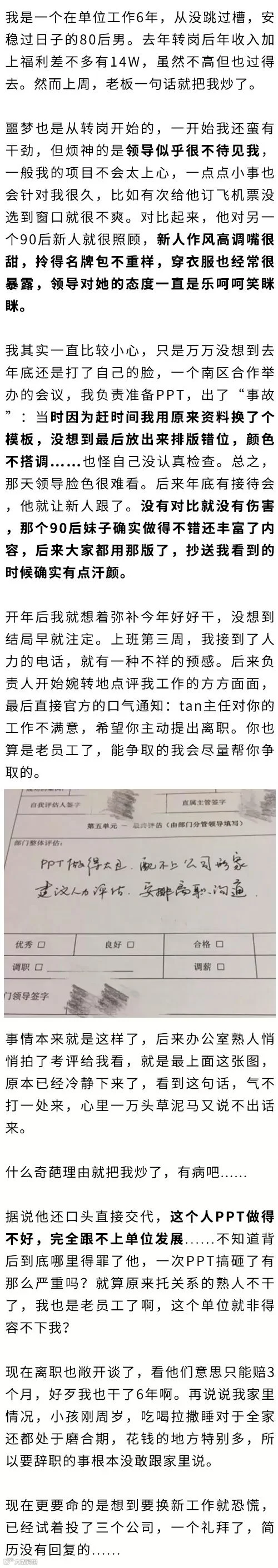 网友“叮叮_9525”在杭州某论坛发布了一则帖子:31岁,因为PPT做得丑,被单位炒了。