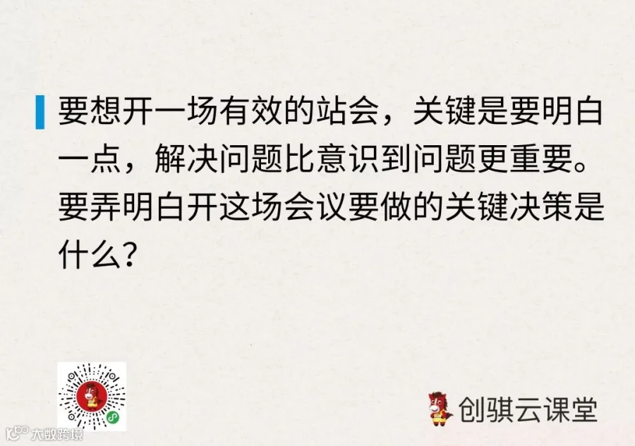 要想开一场有效的站会,关键是要明白一点,解决问题比意识到问题更重要。