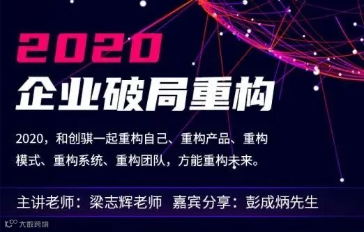 报名参加创骐云课堂“2020企业破局重构”专场研讨会,和行业大咖们共同在学习研讨中碰撞出新的思维火花,找到企业重构的突围之路!
