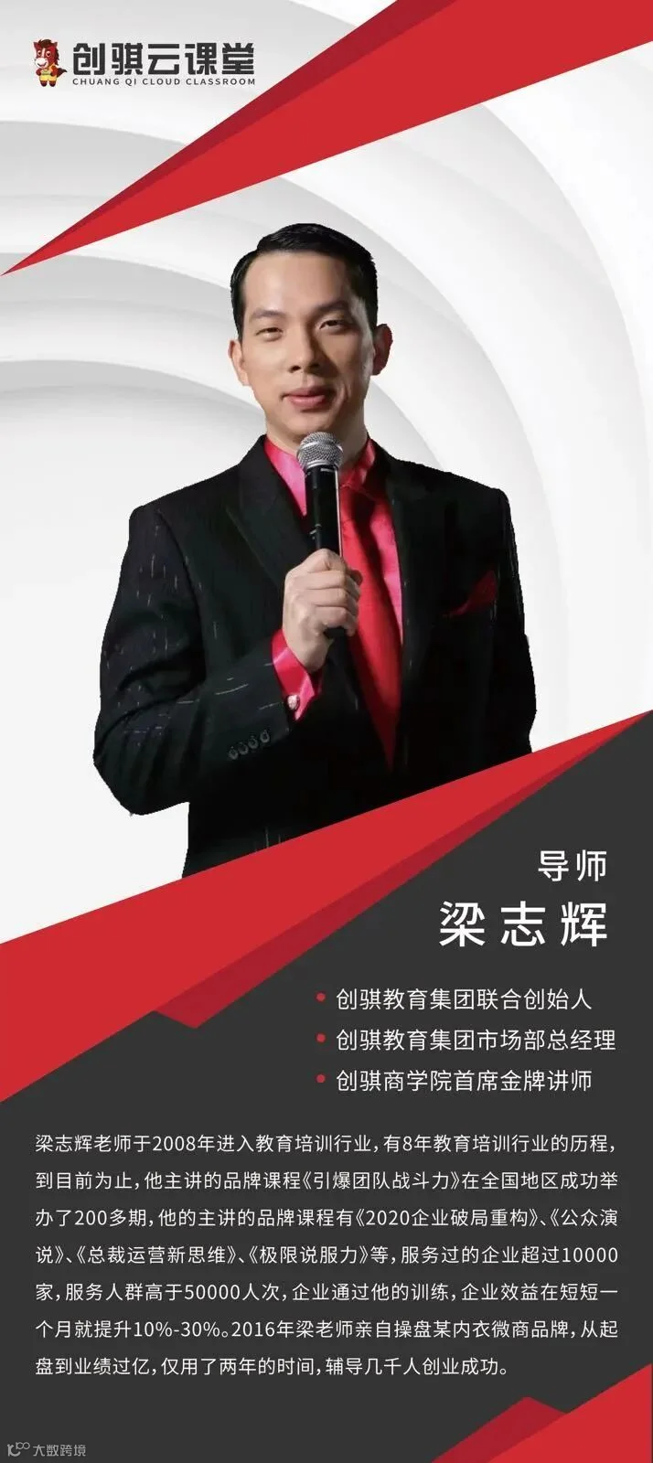 “2020企业破局重构”专场研讨会将在8月21日举行,届时,研讨会将由创骐教育集团联合创始人梁志辉导师主讲,创骐云课堂创始人、创骐教育集团董事长彭成炳先生也会作为特邀分享嘉宾来到现场和大家做分享,大家一定会拭目以待!
