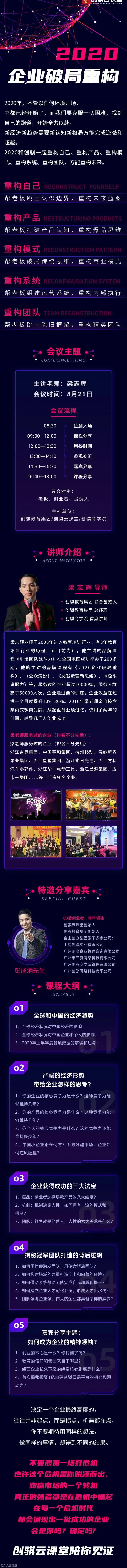 针对这些问题,创骐云课堂发起了“2020企业破局重构”专场研讨会,和各大企业家共同学习研讨、积极应对变化,大胆来一次对产品、商业模式、管理系统、团队运营的重构!