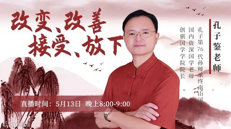 走进孔子鉴老师的直播课堂《改变、改善、接受、放下》,他将为你解疑、授业、答惑。