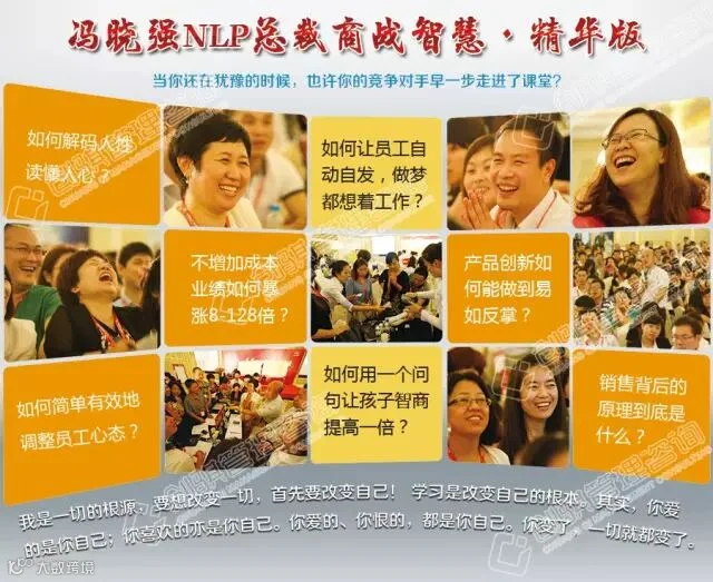 您好,欢迎您参加创骐管理咨询推荐的冯晓强老师《NLP商战智慧》精华班课程或者张宏淼老师《核能执行风暴》课程: