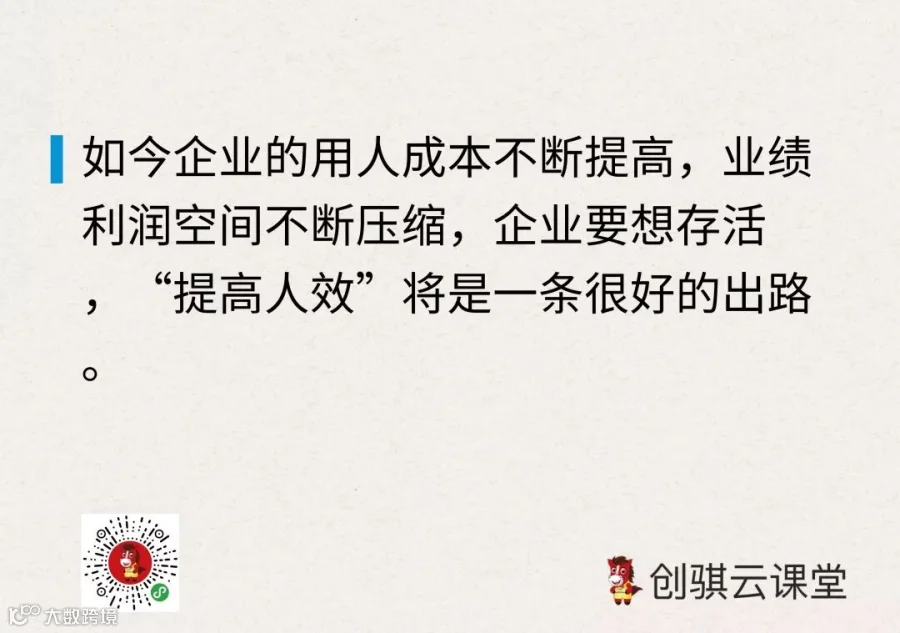 如今企业的用人成本不断提高,业绩利润空间不断压缩,企业要想存活,“提高人效”将是一条很好的出路。