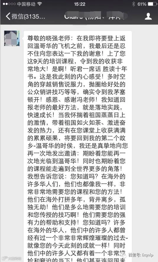 2009至今,连续9年时间,每个月至少一期,已经173期了(据我所知,在培训界只有晓强老师一人做到了)……..我和团队跟随晓强老师在全国多个城市、每期都有至少2500个老板接受晓强老师的《NLP商战智慧.精华班——企业业绩暴涨、老板身心解放》的演讲培训,帮助了236000多中小企业老板(在培训界算是一个非常了不起的奇迹了)的企业业绩、利润倍增........晓强老师也因此被老板们感慨的誉为亚洲实战派导师第一人(当然,还有“商海中的李云龙”、“讲台上的赵本山”等等,其实老师并不喜欢老板们这样称呼他,不喜欢给自己挂上太多的头衔)!