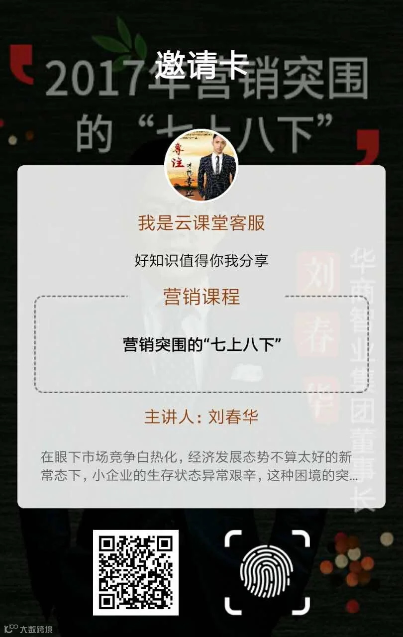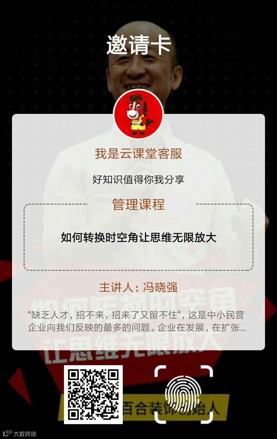 大家好,“创骐云课堂”线上学习平台正式上线,诚邀您一起参与体验手机端线上学习。融合全国100名以上顶尖实战派大师,内容涵盖创业、营销、管理等众多领域,跨越时空限制,让学习无处不在。直接扫码注册登记、下载即可!