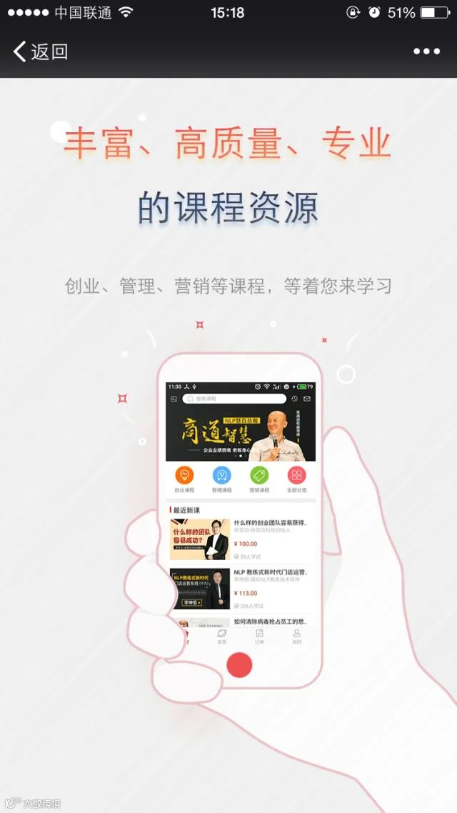 线上学习的好处:融合全国100名以上顶尖实战派大师,内容涵盖创业、营销、管理等众多领域,跨越时空限制,让学习无处不在。