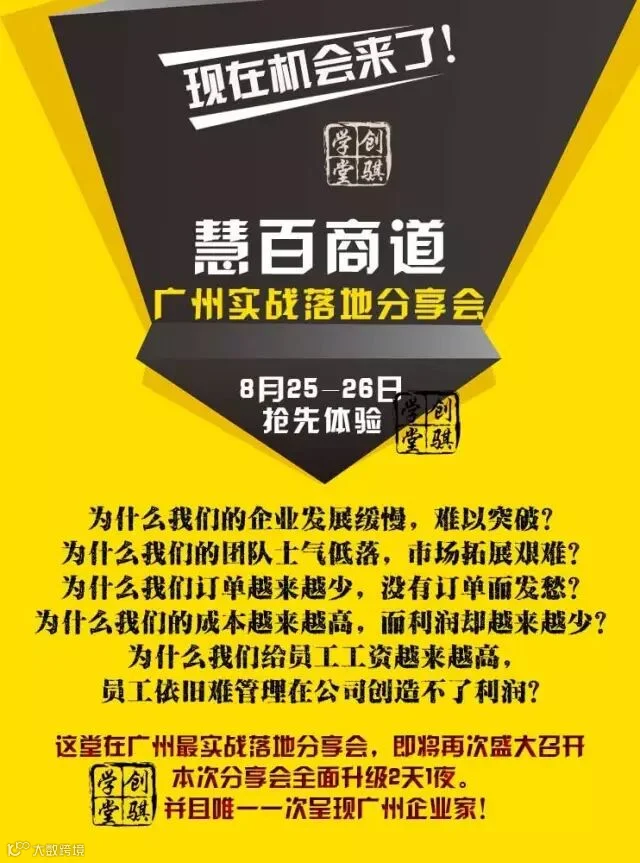 由广州创骐企业管理咨询有限公司主办的《NLP商道智慧·广州实战落地体验课》8月25-26日即将登陆广州·花都!2天一晚内容全面升级,原价3800元/人,现仅需300元/人餐费!