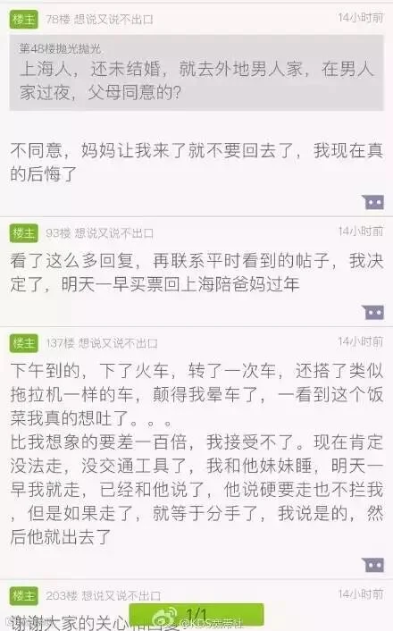 一个上海女孩交了一个外地到上海工作的男朋友,今年春节她跟着男友到了他在江西山区的老家过年,但是去了以后对方穷苦的家庭环境让她很不适应。她把自己在男友家吃的第一顿饭发在了自己常去的上海本地论坛“篱笆网”上,毅然决然地和男友分了手,并且让家人当晚就从上海开车来接她回家。