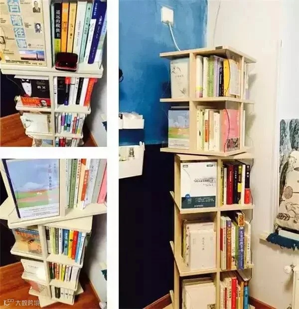 书架是上海书展时见到的,能有效利用空间(约放200本书),能高低分隔,还可旋转。印章是藏书印,从小每本书都有盖,已经成为习惯。